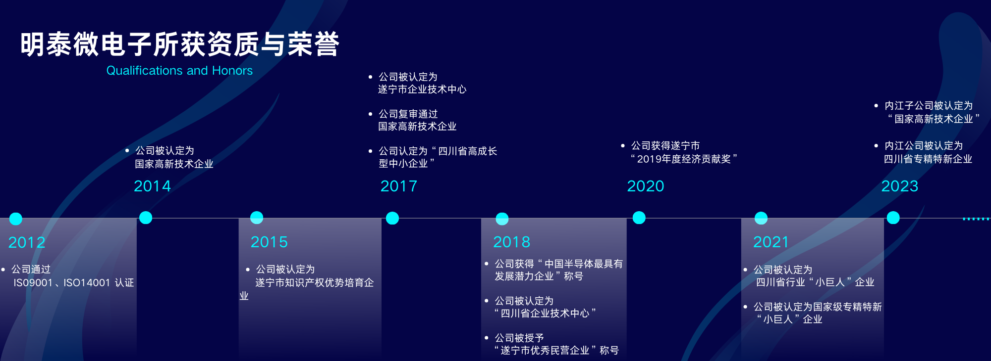 明泰微電子是一家從事集成電路和分立器件封裝與測(cè)試業(yè)務(wù)的國(guó)家高新技術(shù)企業(yè),是目前成渝經(jīng)濟(jì)圈規(guī)模最大的第三方獨(dú)立封測(cè)服務(wù)型制造企業(yè)。主營(yíng)業(yè)務(wù)為集成電路和功率器件的封裝、測(cè)試和銷(xiāo)售,是西南地區(qū)規(guī)模最大的獨(dú)立第三方代工企業(yè)。公司現(xiàn)有的封裝產(chǎn)品主要包括DIP系列、SOP系列、TO系列、SOT系列、QFN/DFN、LQFP、LGA、PDFN、TOLL等,掌握疊層封裝、多芯片封裝等技術(shù)。